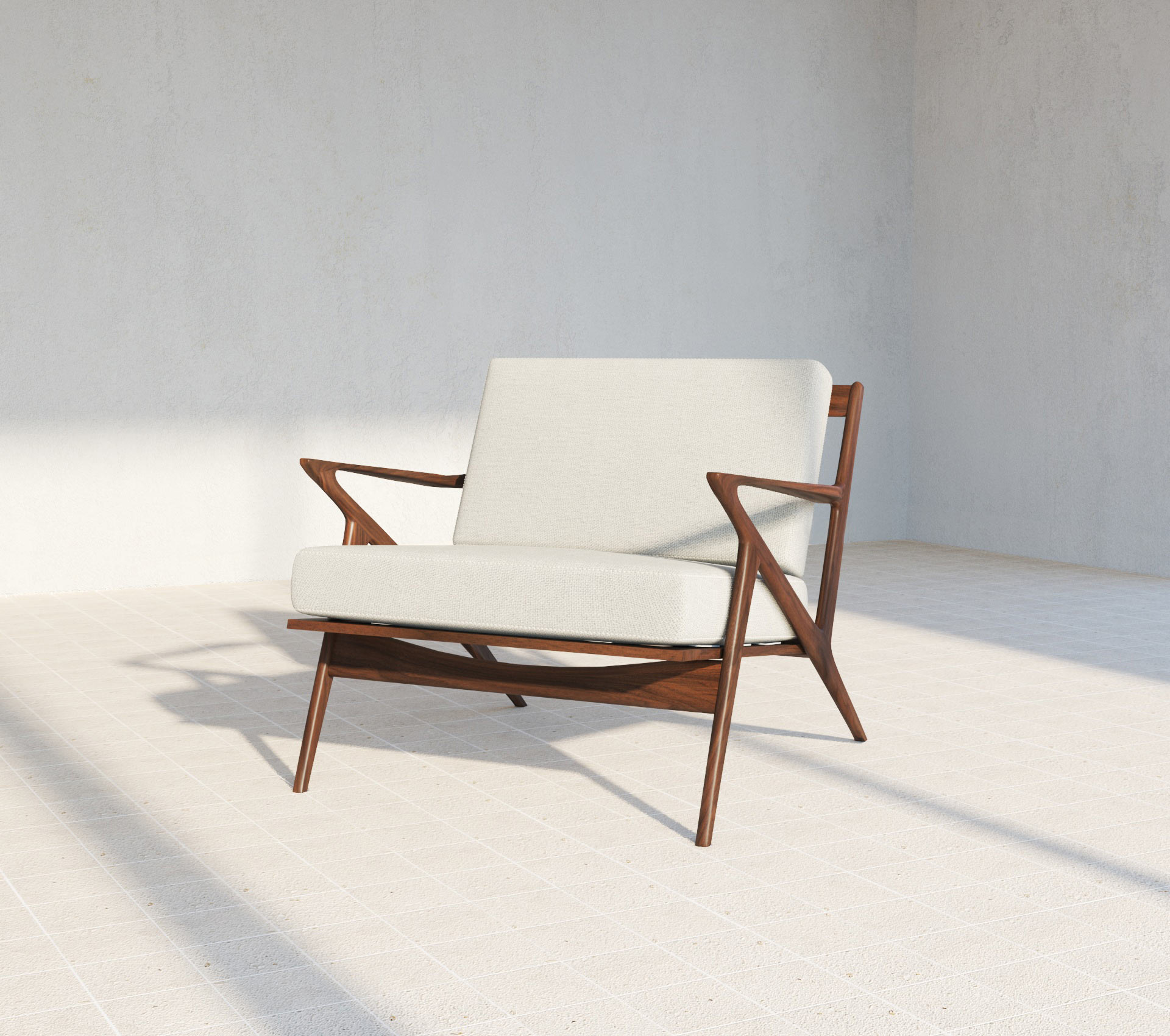 3D visualization of the Danish modern lounge chair designed by Poul Jensen for Selig in Denmark, circa 1960
